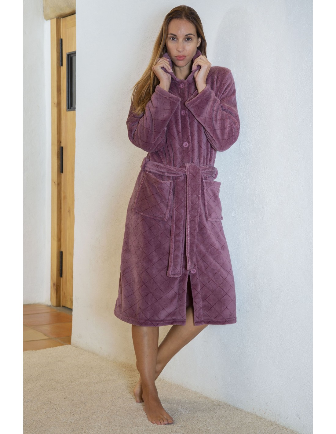 Bata Mujer Larga Botones Cinturón