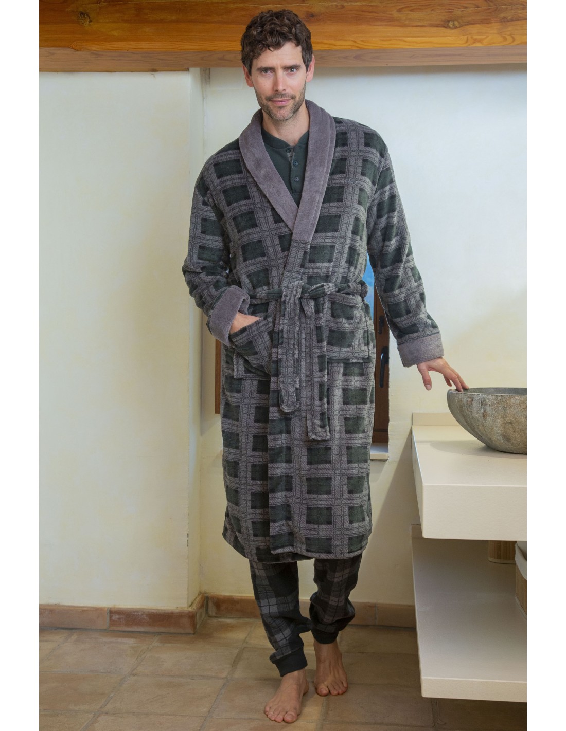 Bata Hombre Larga Cuadros