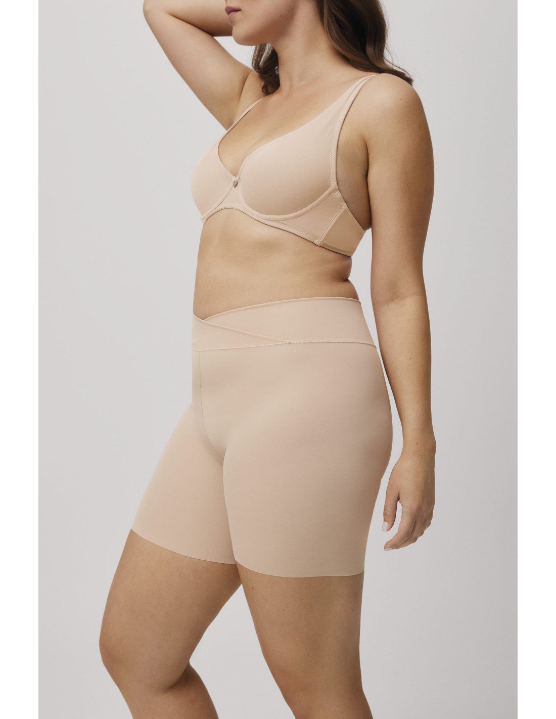 Culotte antirroce de microfibra y perneras con corte láser. Cinturilla cruzada que se acopla a cualquier silueta. La ausencia de ribetes y costuras lo convierte en invisible bajo prendas ajustadas. El corte láser ofrece una terminación completamente plana que aporta gran adaptabilidad. Tejido elástico muy suave.