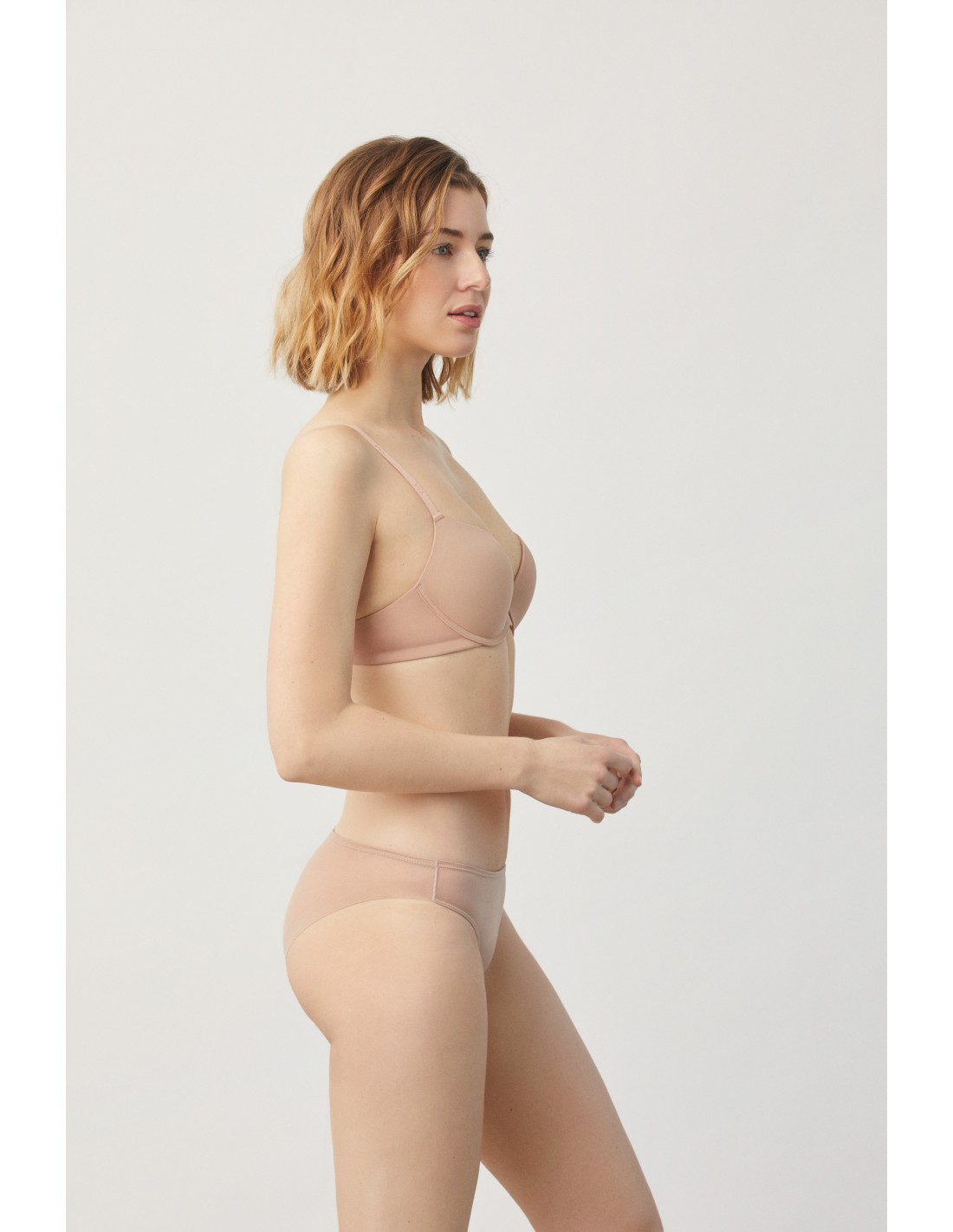 Braga mini de microfibra. La comodidad de la braguita y la invisibilidad del tanga gracias al tejido invisible elástico y de gran adaptabilidad de su parte posterior. Un clásico confortable actualizado con diseño más sensual y femenino.