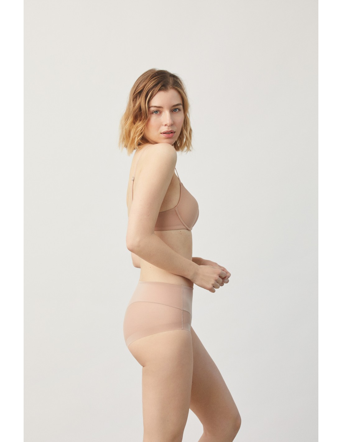 Braga de microfibra. La comodidad de la braguita y la invisibilidad del tanga gracias al tejido invisible elástico y de gran adaptabilidad de su parte posterior. Un clásico confortable actualizado con diseño más sensual y femenino.