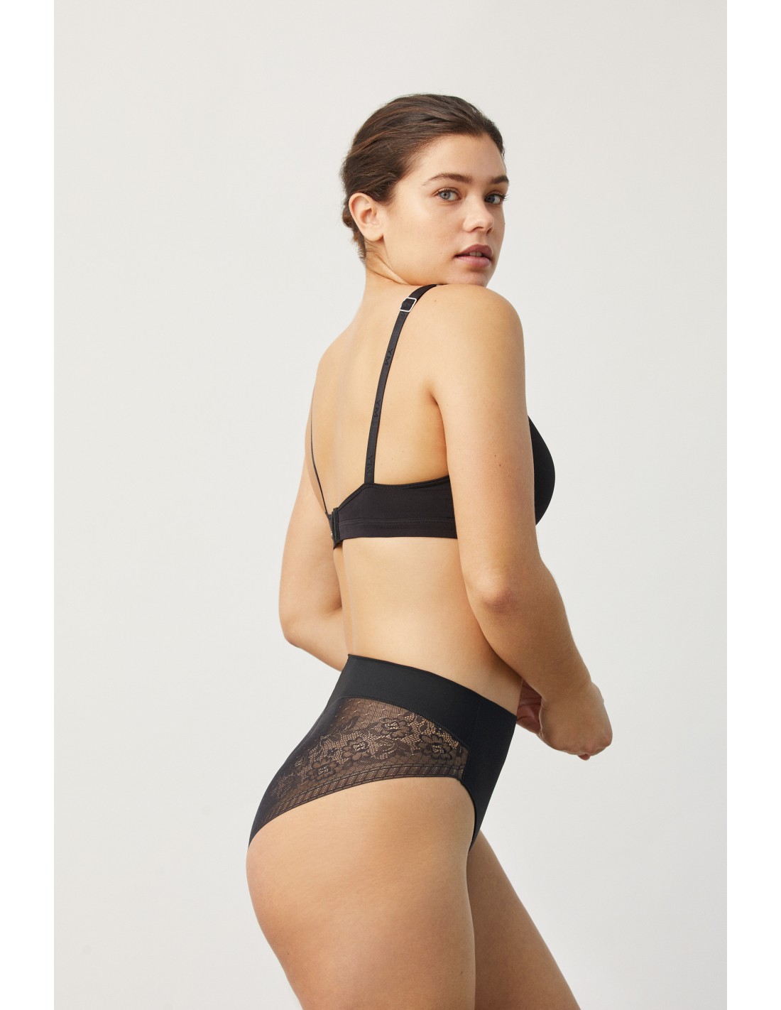Braga reductora de la Colección Special You shaper. Efecto control sobre abdomen y caderas. Incorpora pieza central de refuerzo en el bajo abdomen para la consecución de efecto vientre plano. Costuras ultraplanas y encaje floral corte láser que la hacen imperceptible bajo la ropa. Tan sensual como efectiva.