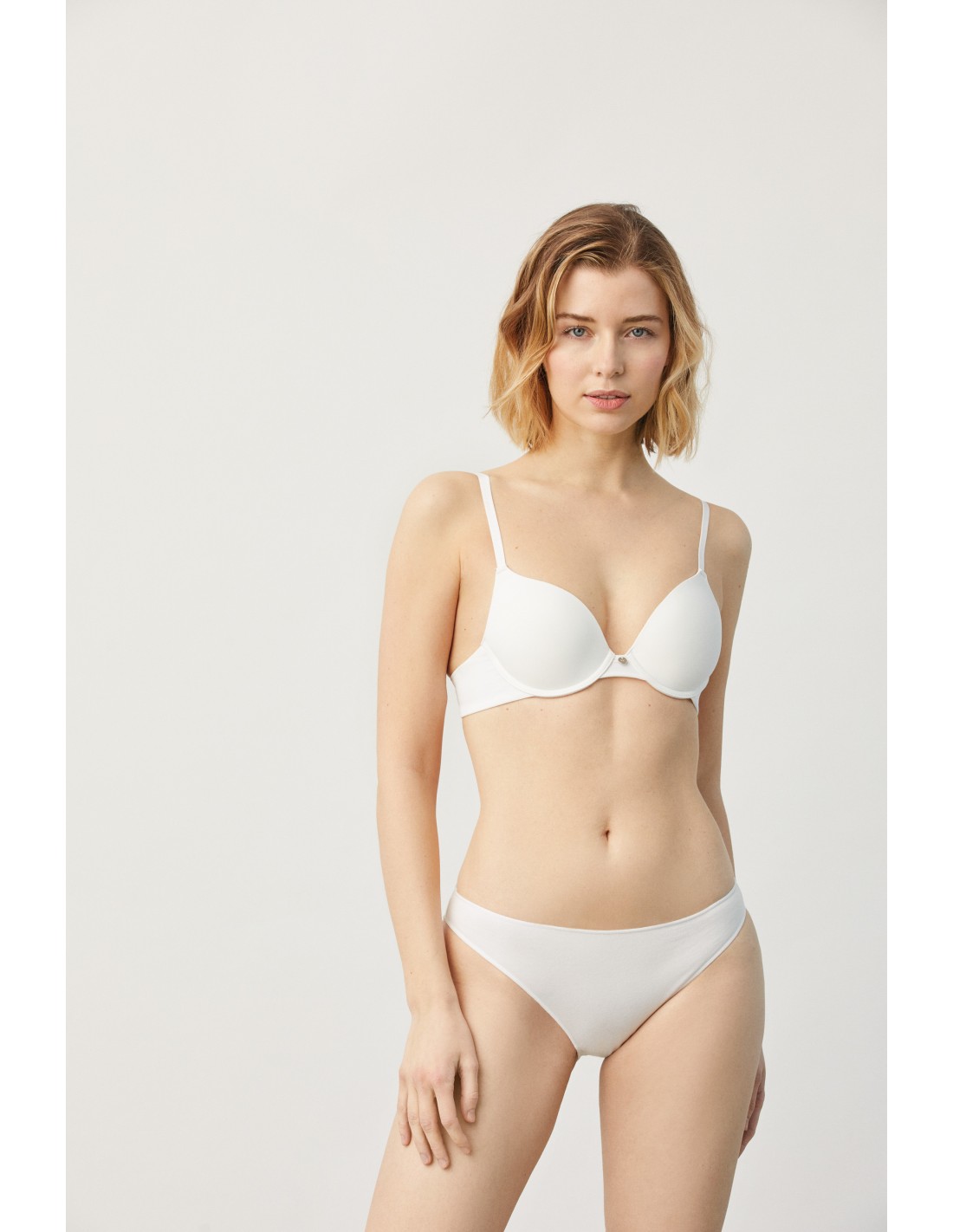 Braga mini en tejido Cotton Nature. Las fibras naturales de este material aportan un extra de suavidad a la prenda. Su acabado con costuras planas invisibles evitan las marcas y favorecen una mayor adaptabilidad y un ajuste ergonómico perfecto. Modelo básico de gran confort pensado para el día a día. Confeccionadas con material antialergénico.