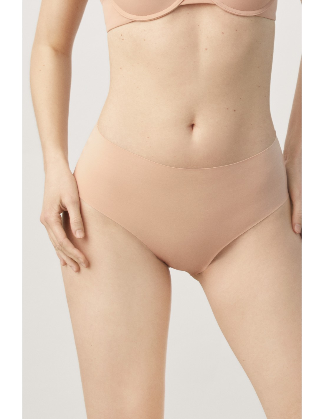 Braga maxi de algodón y acabado corte láser. La ausencia de ribetes y costuras la convierte en invisible bajo prendas ajustadas. El corte láser ofrece una terminación completamente plana que aporta gran adaptabilidad. Tejido elástico muy suave y antialergénico.