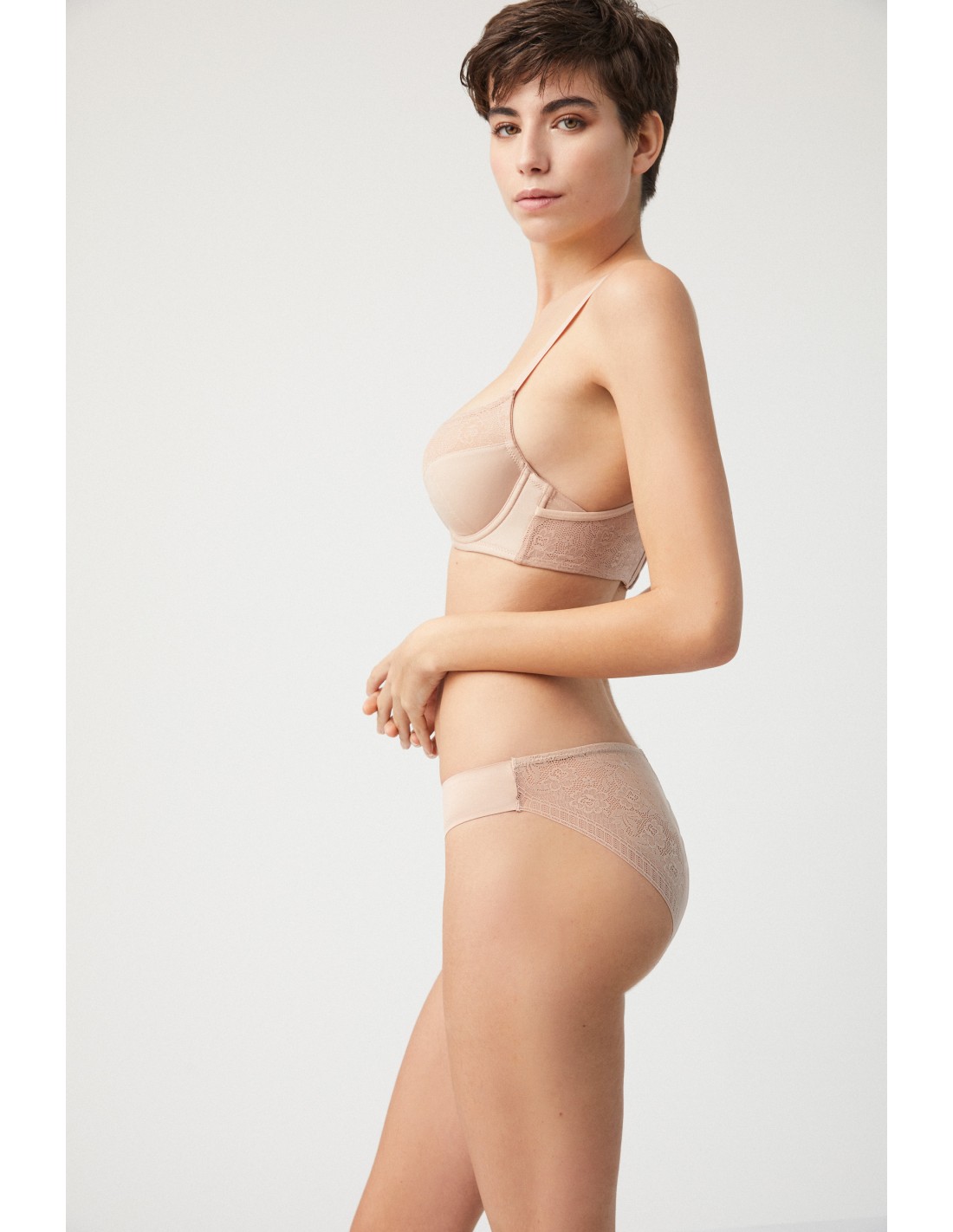 Braga mini de encaje de la Colección Special You. Prenda femenina y sensual. La invisibilidad de la fantasía floral en encaje se combina con la suave opacidad del tejido de microfibra. Elásticas y cómodas, su delicado diseño fusiona calidad y elegancia.