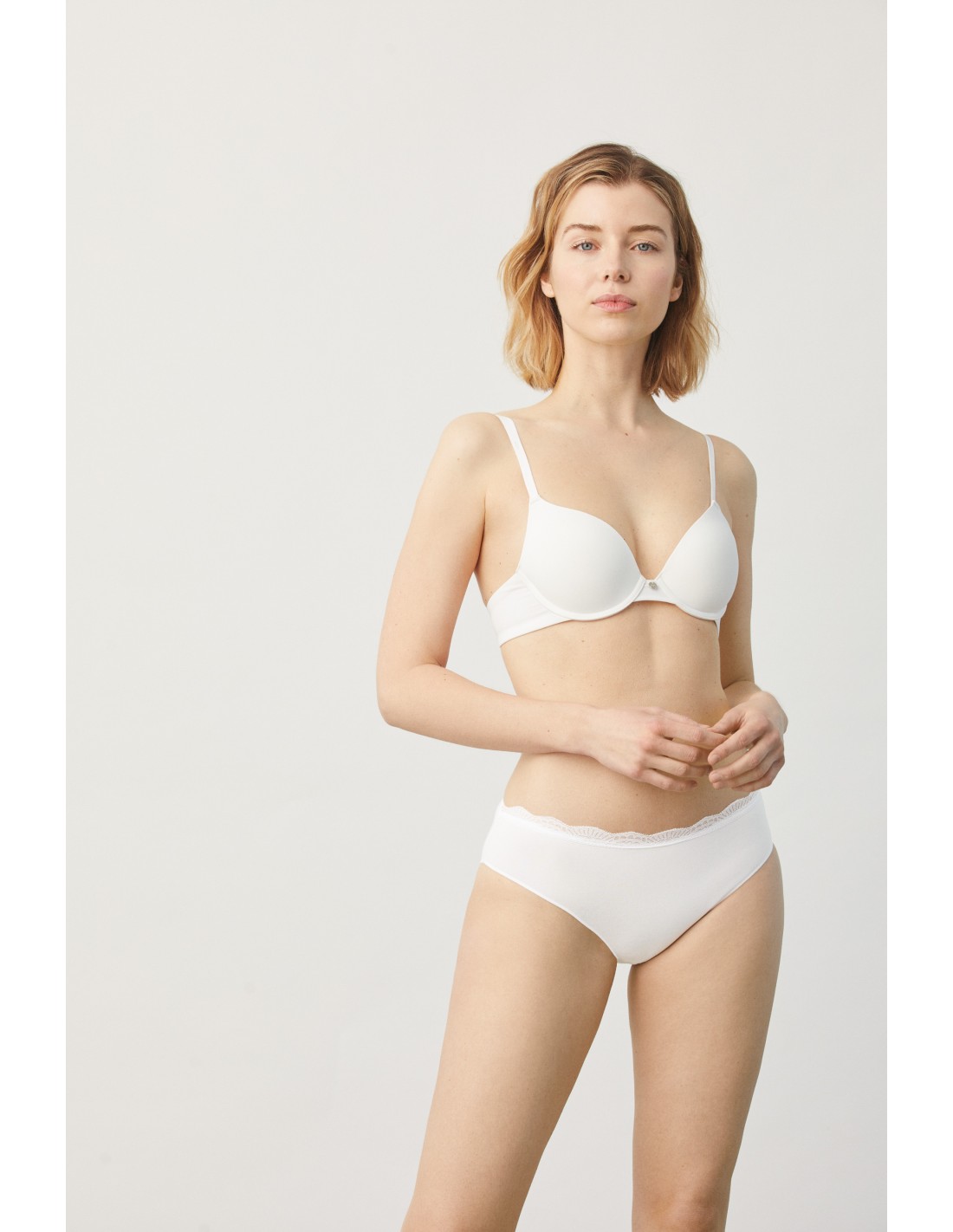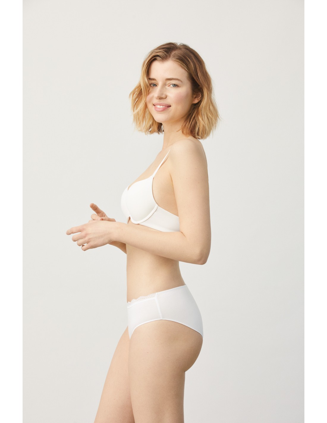 Braga midi en tejido Cotton Nature. Las fibras naturales de este material aportan un extra de suavidad a la prenda. Sus acabados con costuras planas invisibles evitan las marcas y favorecen una mayor adaptabilidad y un ajuste ergonómico perfecto. Modelo básico de gran confort pensado para el día a día. Decoradas con blonda. Confeccionadas con material antialergénico.