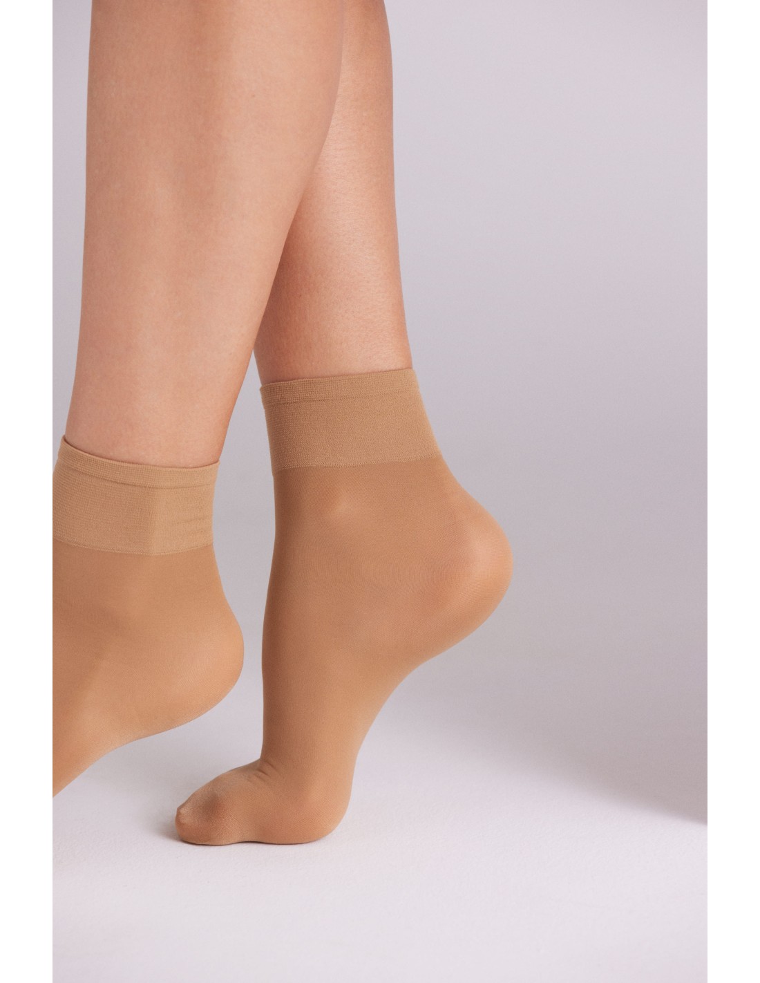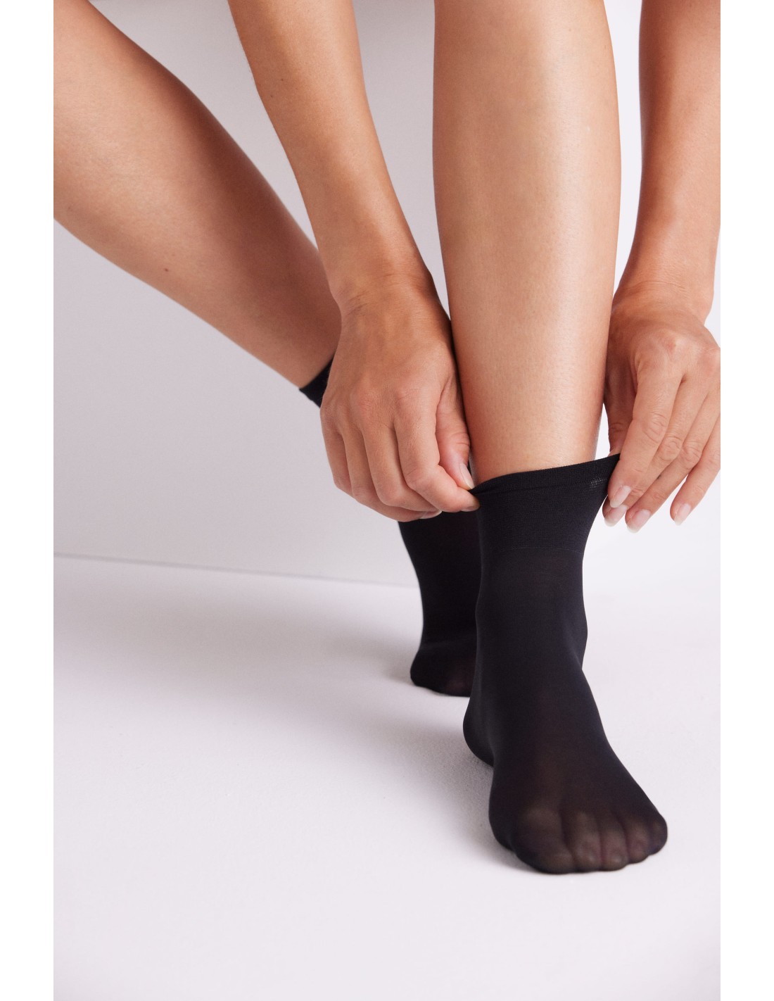 Tobillero de 40 DEN. Su compresión anatómica proporciona una sensación de descanso y previene la mala circulación, asegurando al mismo tiempo máxima comodidad. Puño anti presión. No cae, no oprime.
