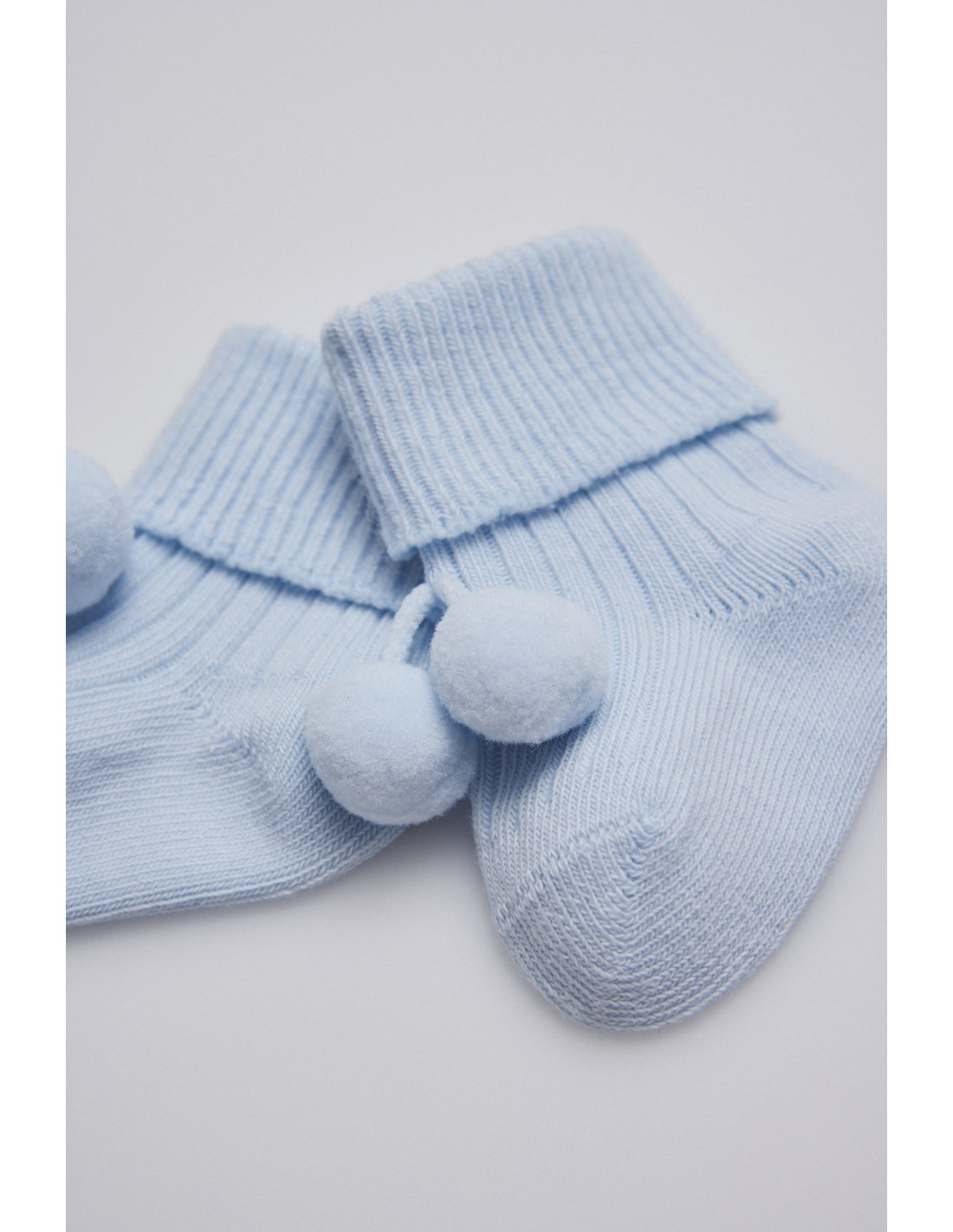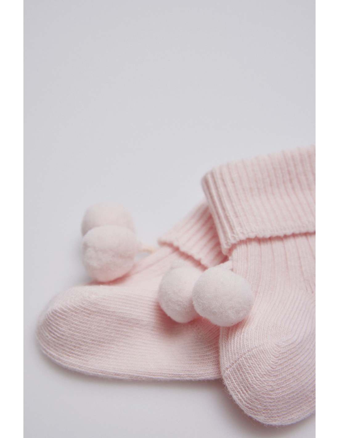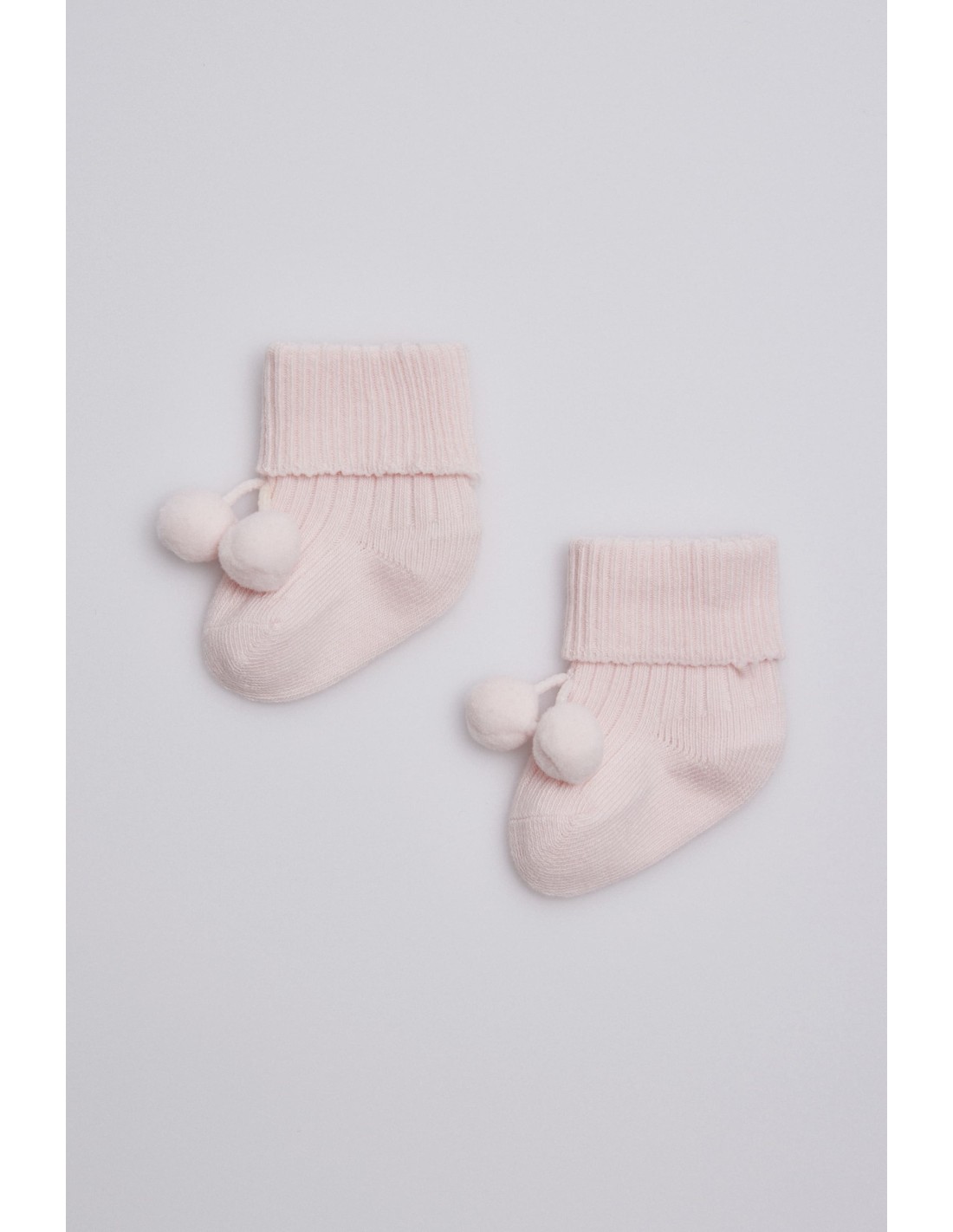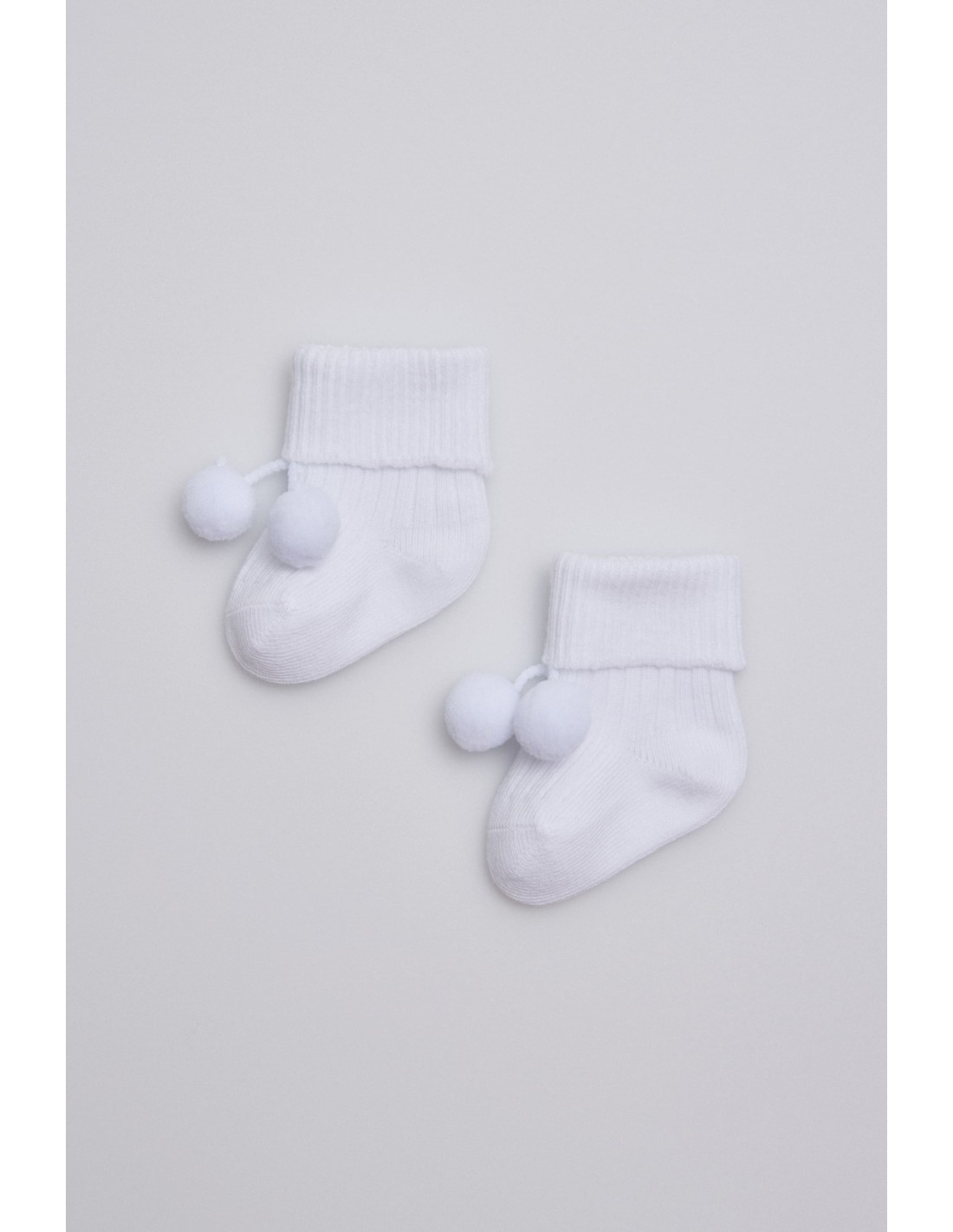 Calcetín básico recién nacido. Tejido en suave algodón canalé, se ajusta ergonómicamente al pie del bebé evitando que deslice. Cuidado prenatal asegurado con el doble puño especial antipresión. Decorados con lazo de raso, estos dulces calcetines son el confort necesario para los más pequeños de la casa.