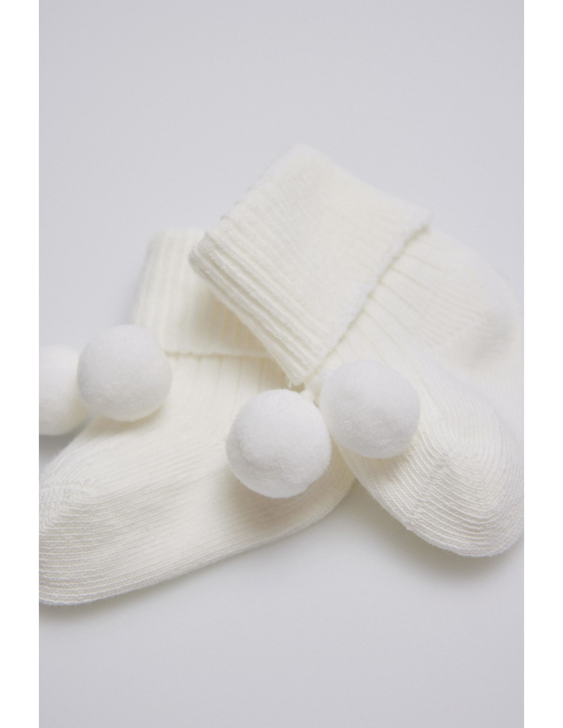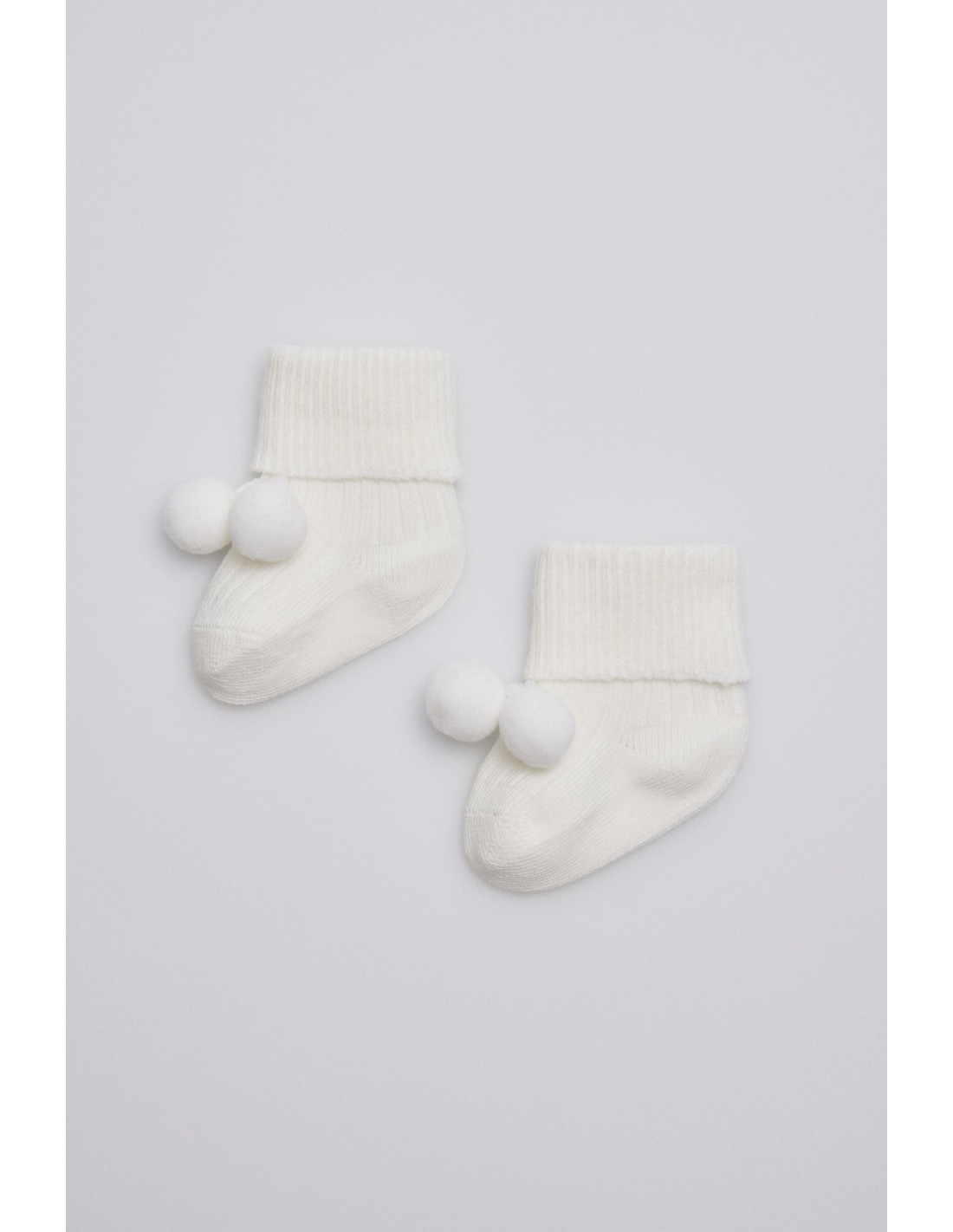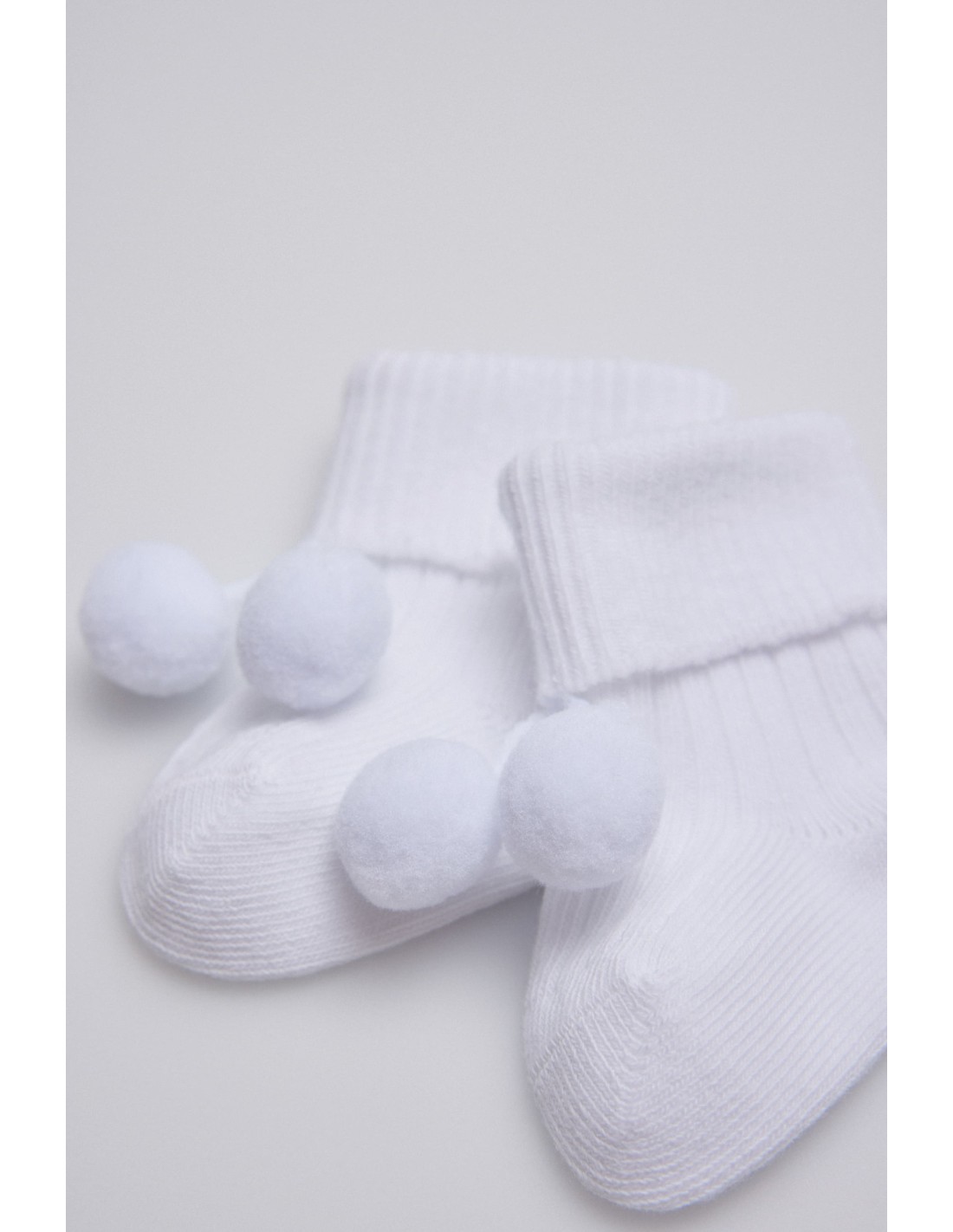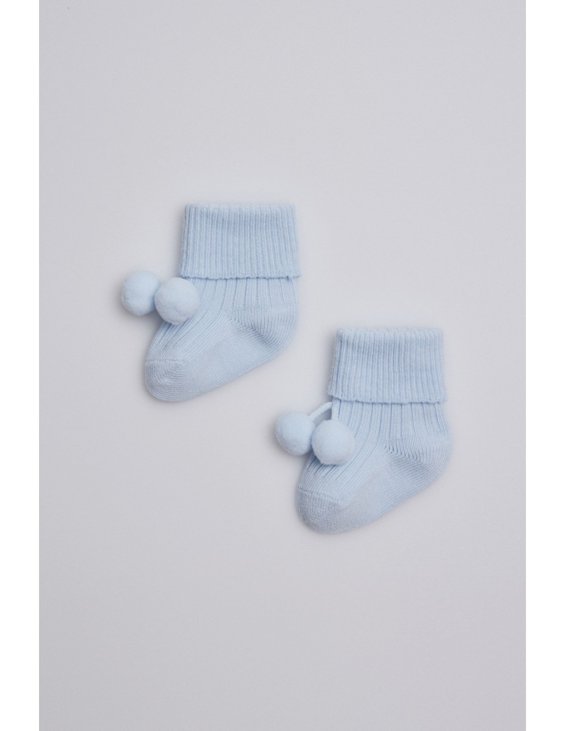Calcetín básico recién nacido. Tejido en suave algodón canalé, se ajusta ergonómicamente al pie del bebé evitando que deslice. Cuidado prenatal asegurado con el doble puño especial antipresión. Decorados con lazo de raso, estos dulces calcetines son el confort necesario para los más pequeños de la casa.
