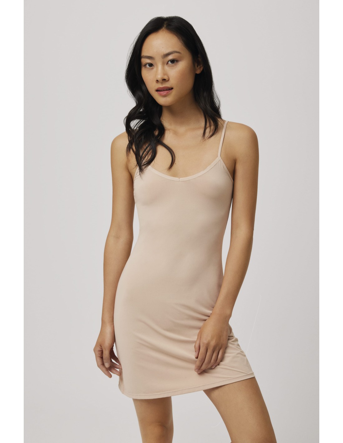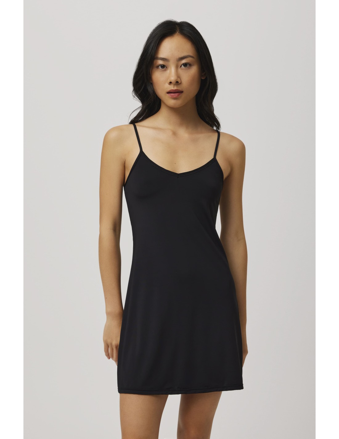 Combinación vestido básico de escote en "V" confeccionado en tejido de microfibra. Los tirantes son regulables para mayor comodidad y sujeción. Sensualidad para el día a día. Disponible en dos colores.