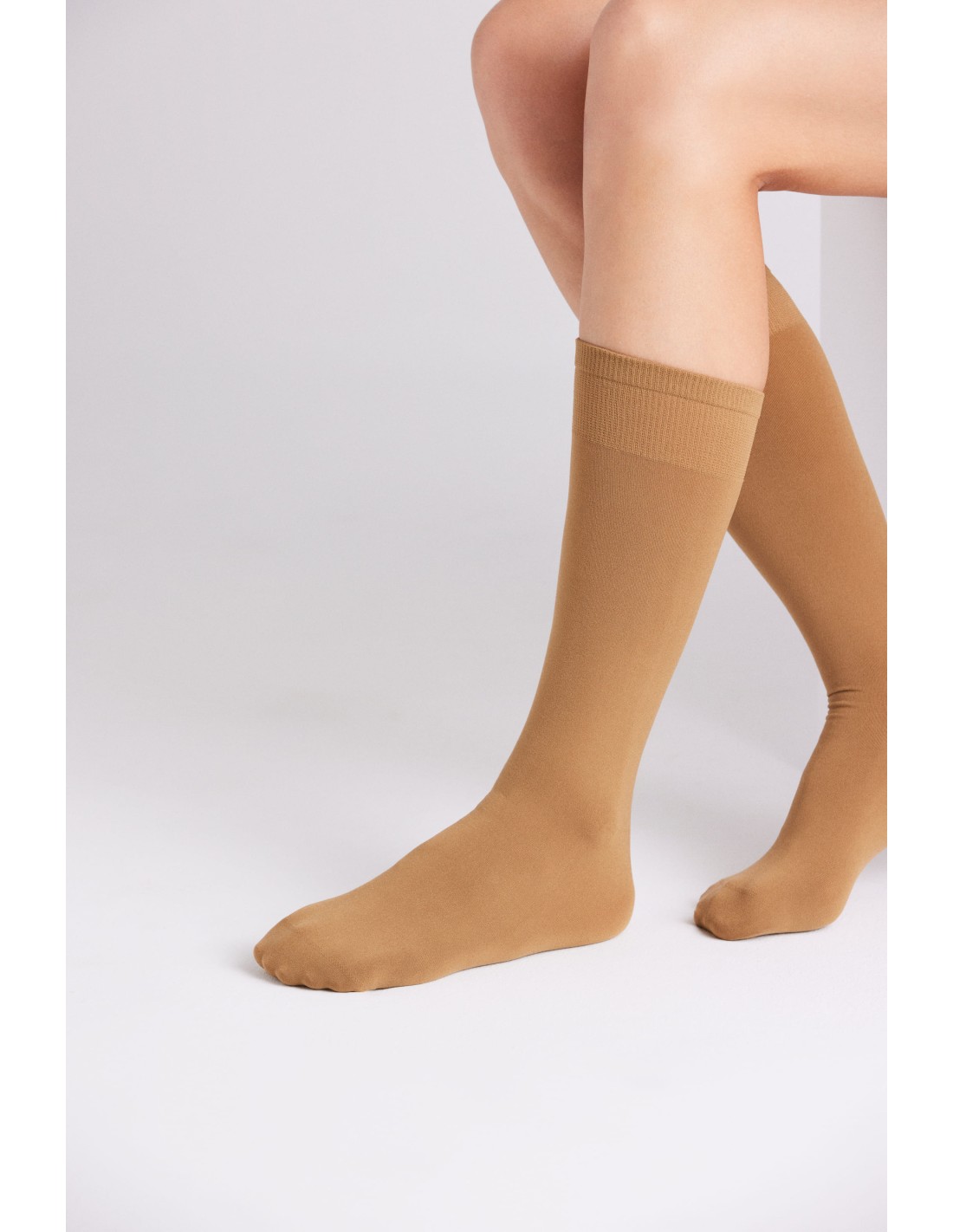 Mini media 70 DEN. Confeccionado con puño ancho confort antipresión que ofrece sujeción sin opresión.