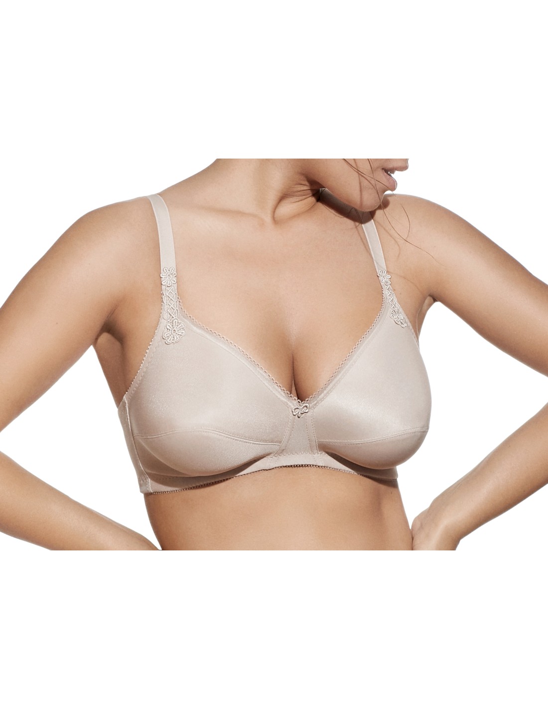 Sujetador clásico sin aros fabricado en tejido simplex para dar mayor sujección. Lleva adorno de guipur en los tirantes.