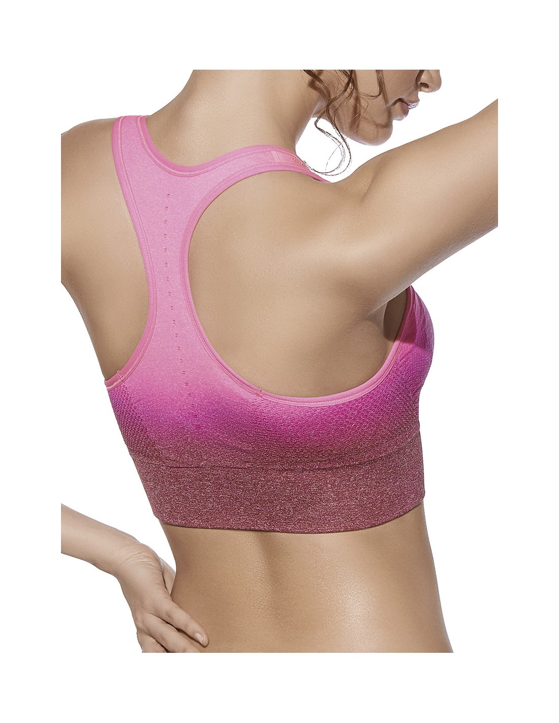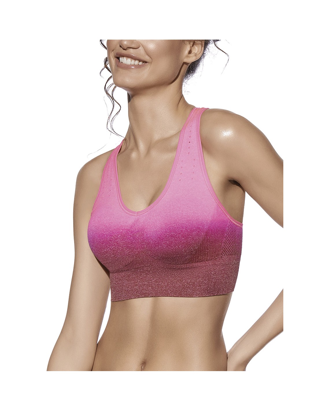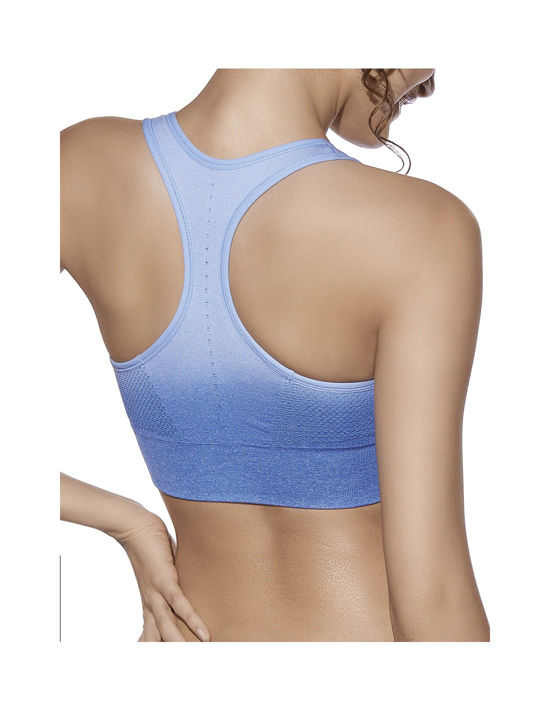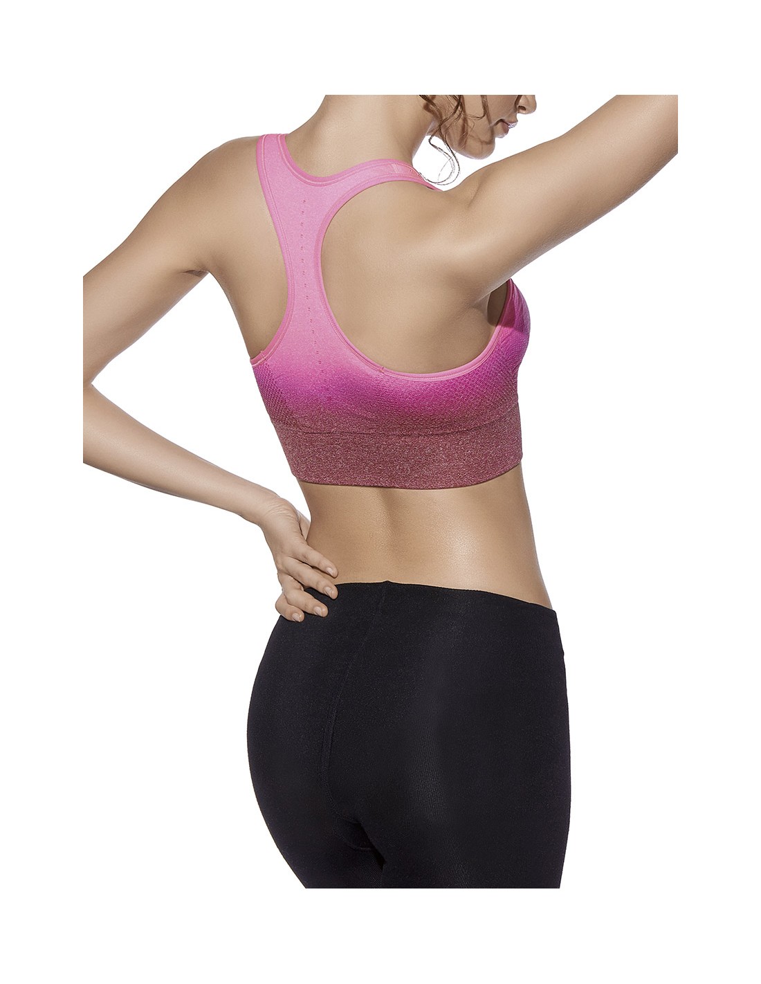 Sujetador deportivo con degradado bicolor sin costuras con copa de relleno extraible. Cómoda espalda olímpica en Y... Control y firme sujeción.