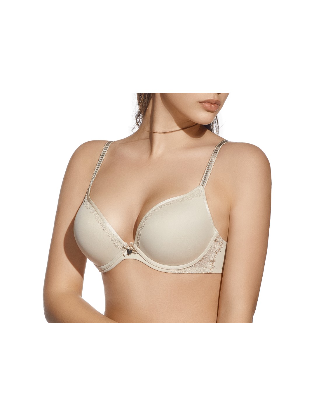 Sujetador con aros con copa de relleno 'push up' y detalle de encaje en el lateral.