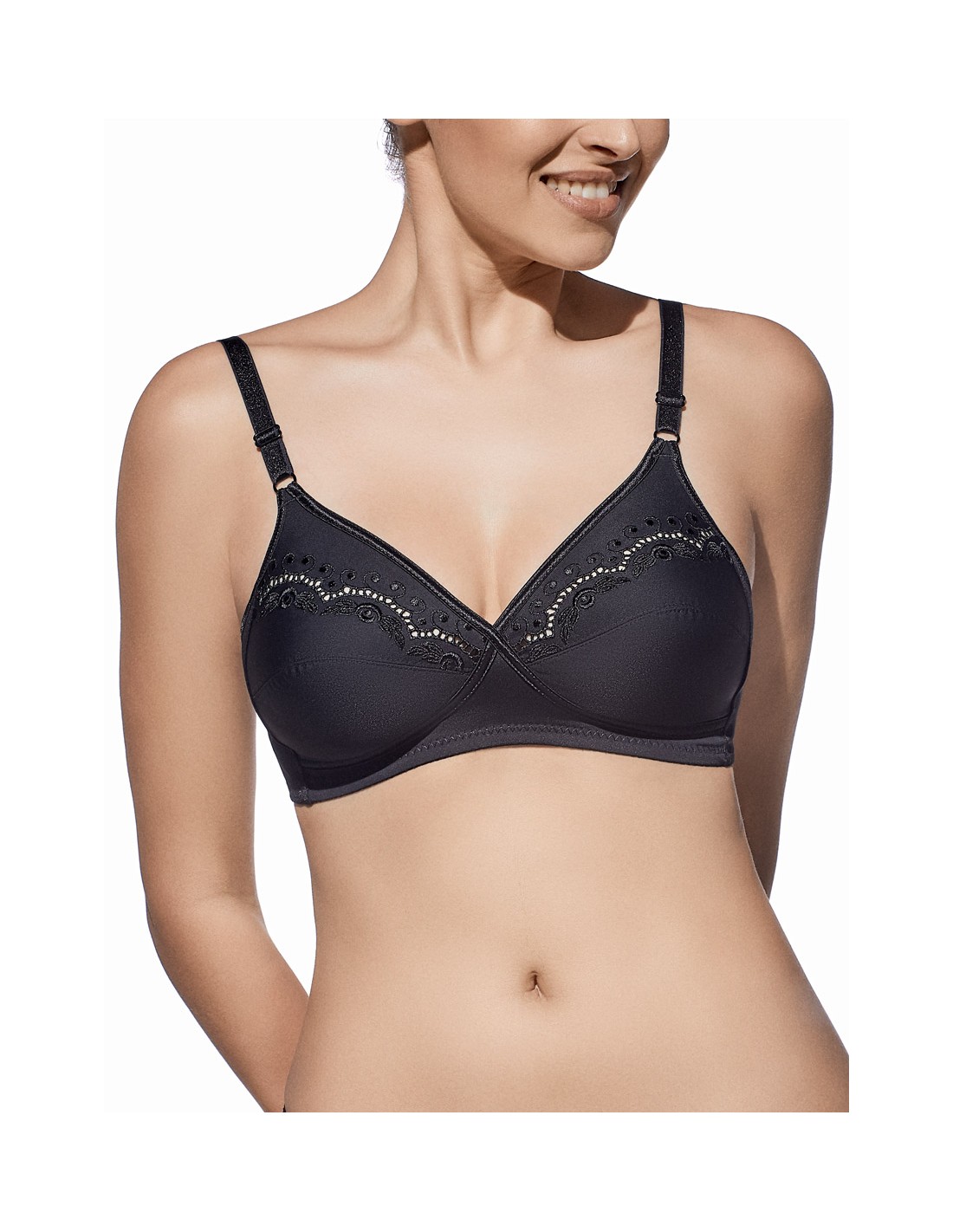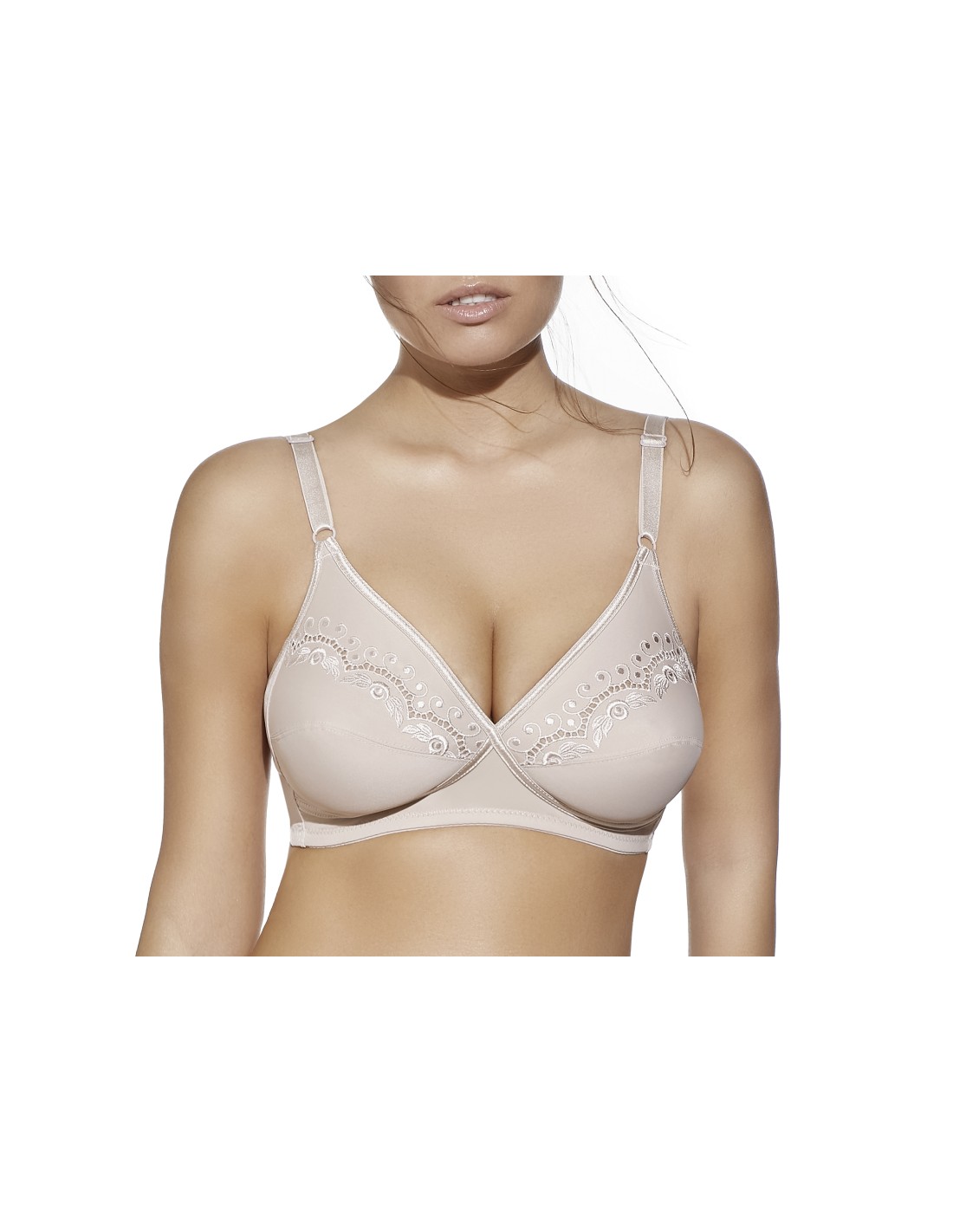 Sujetador clásico cruzado sin aros. Fabricado en tejido simplex bordado