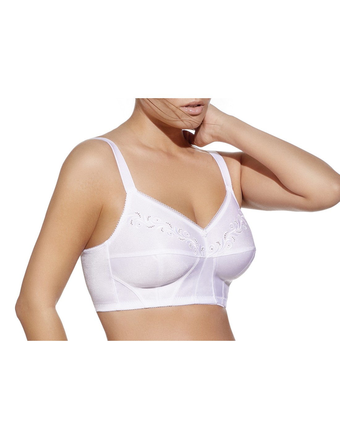 Clásico de medio cuerpo sin aros, fabricado en tejido simplex bordado.