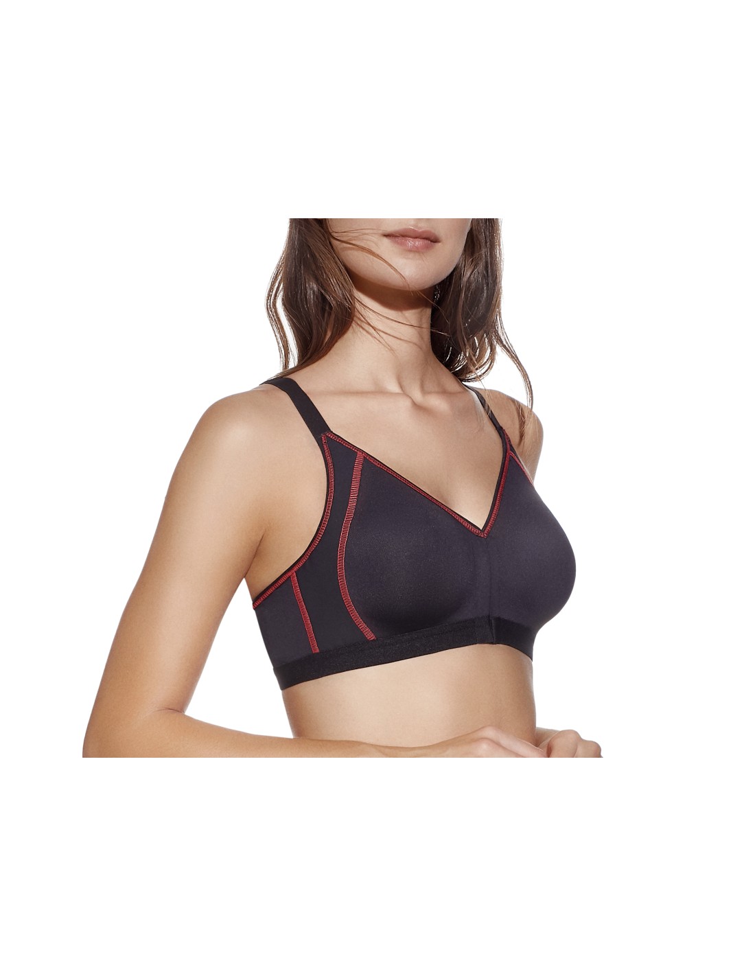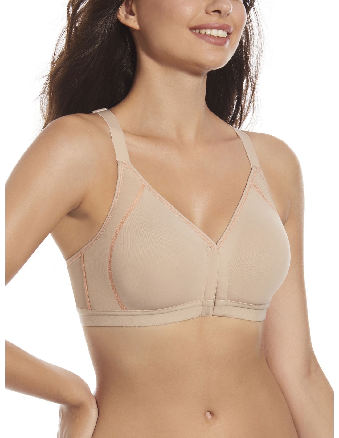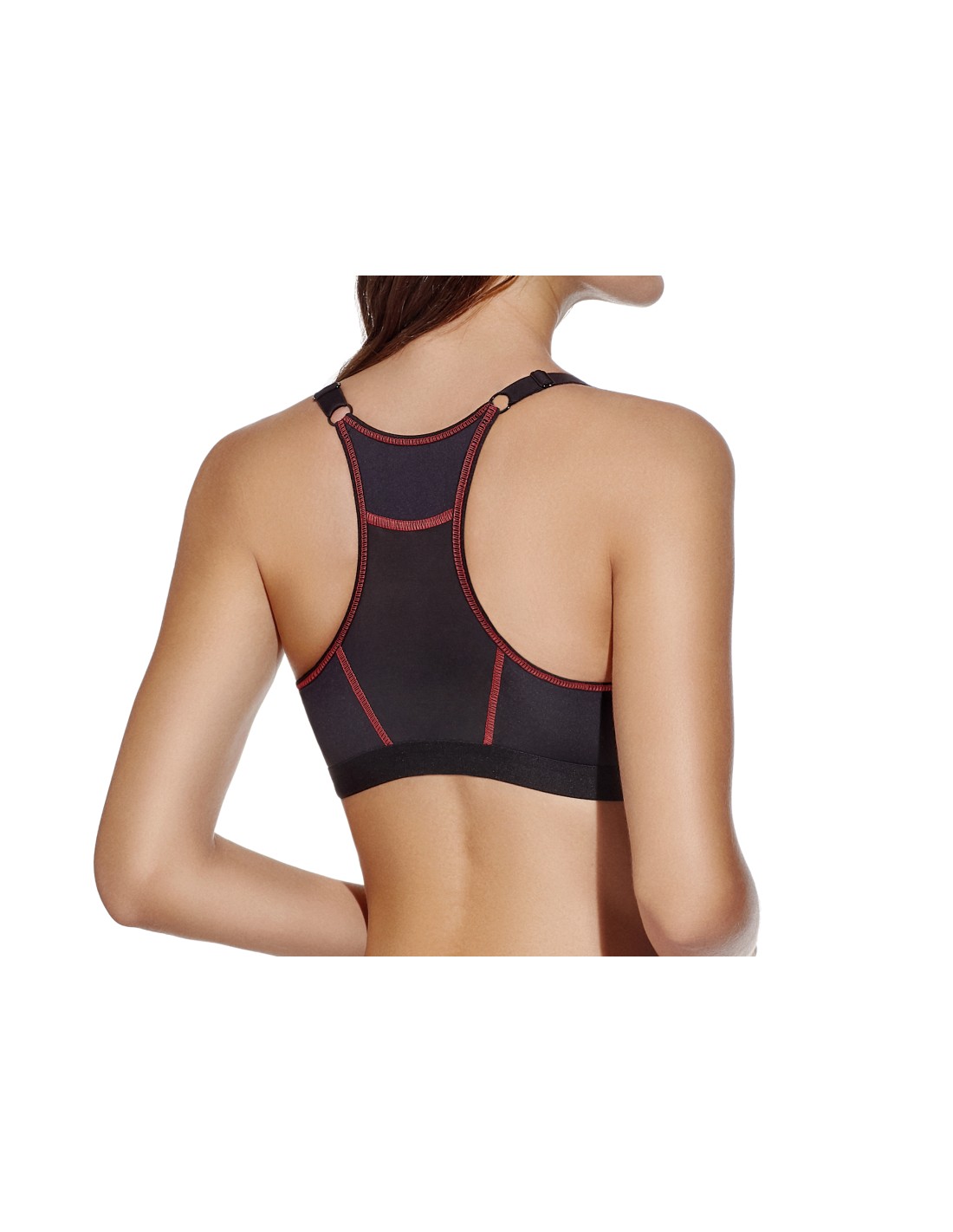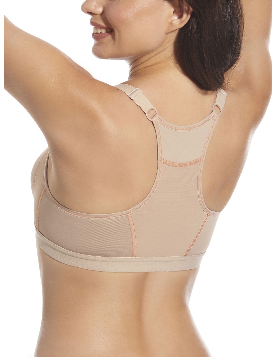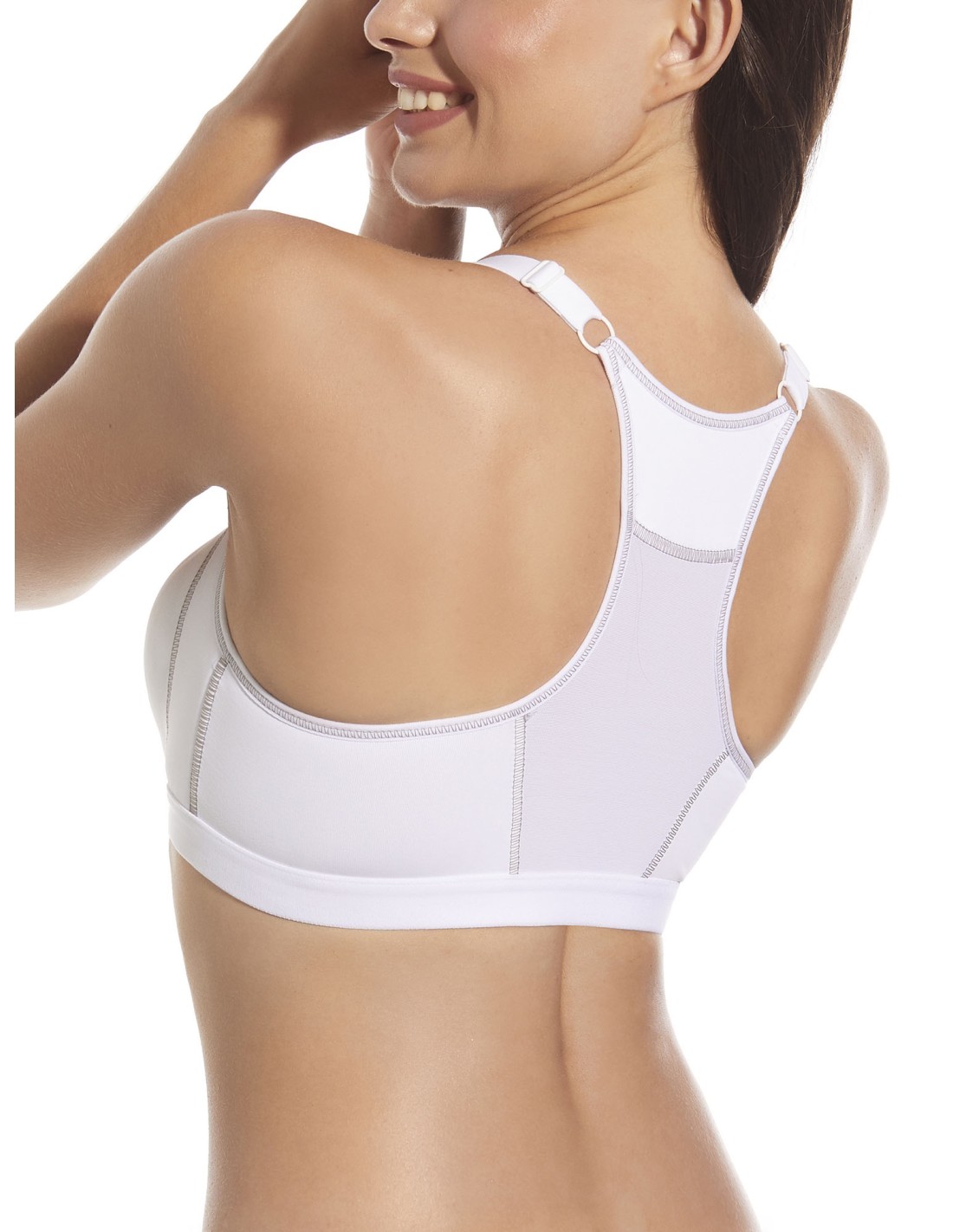 Deportivo de microfibra de doble capa, sin aros, apertura delantera y espalda olímpica.